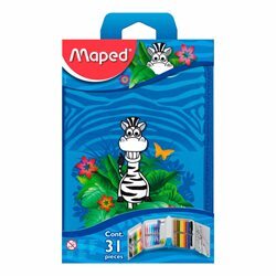 Contenido 31 artículos :8 lápices de color + 14 rotuladores + 1 sacapuntas + 1 kit de trazado (reglas de 15 cm, escuadra 45° y 60°) + 1 goma + 2 lápices graphite HB + 2 bolígrafos.